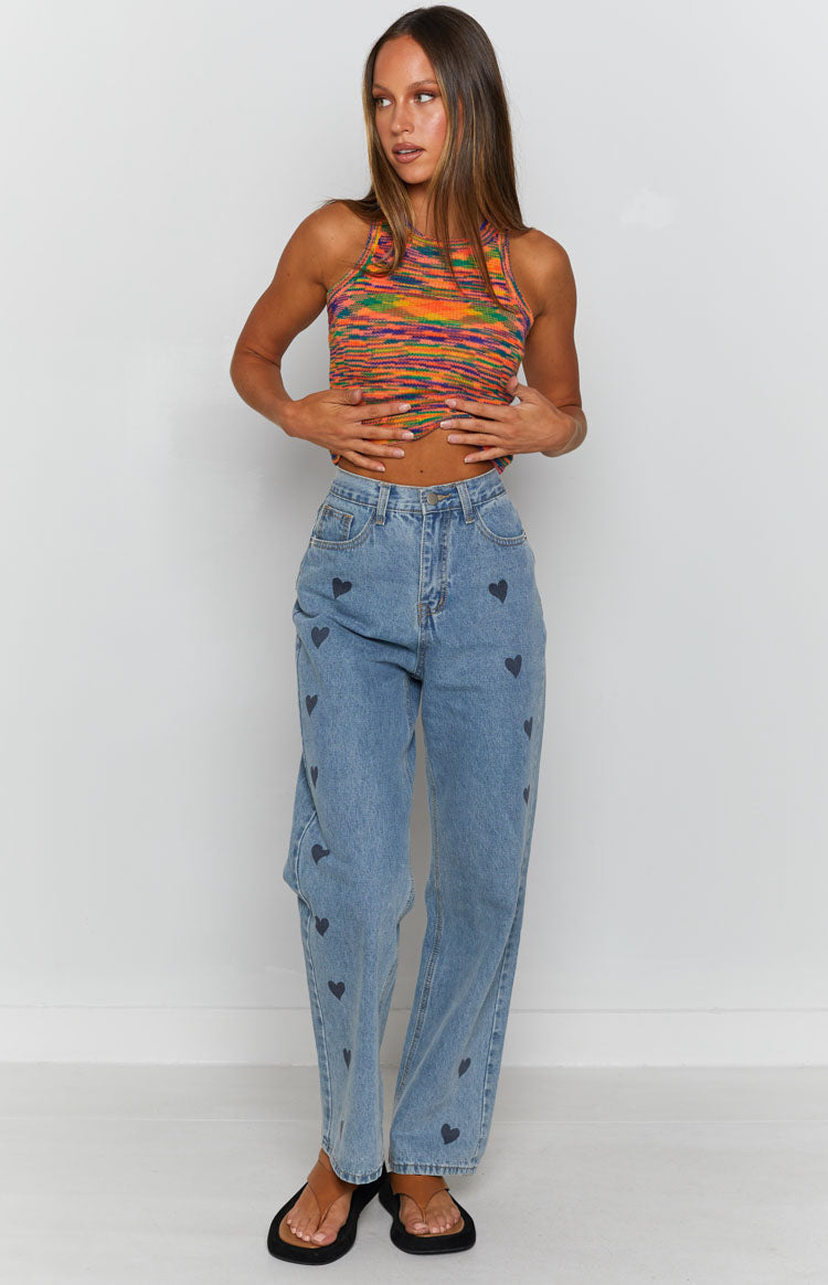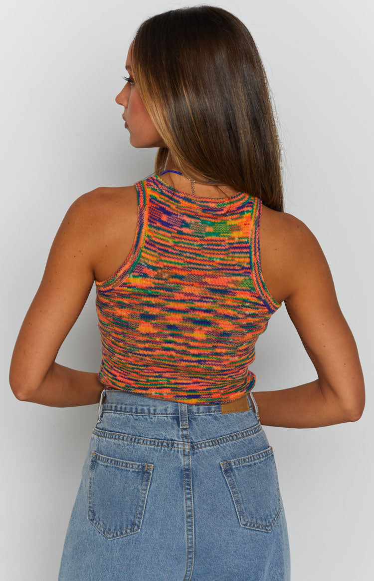 - This vibrant multi-coloured tank pairs perfectly with any denim bottoms and its soft knit fabric will keep you that lil bit warmer when the wind hits