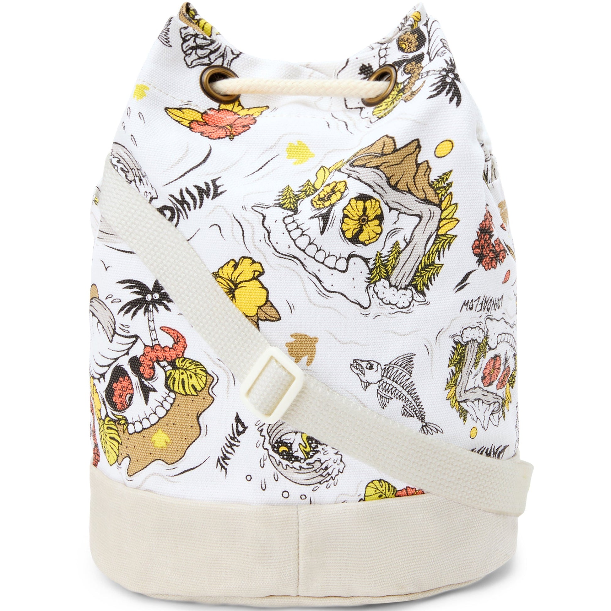 - DAKINE x LOINDAFLOWExterior zippered pocketMain compartment with cotton rope drawstring closureInterior key clipAdjustable shoulder strapWaxed cotton bottom panelDue to the finishing process used on this canvas, each piece is unique