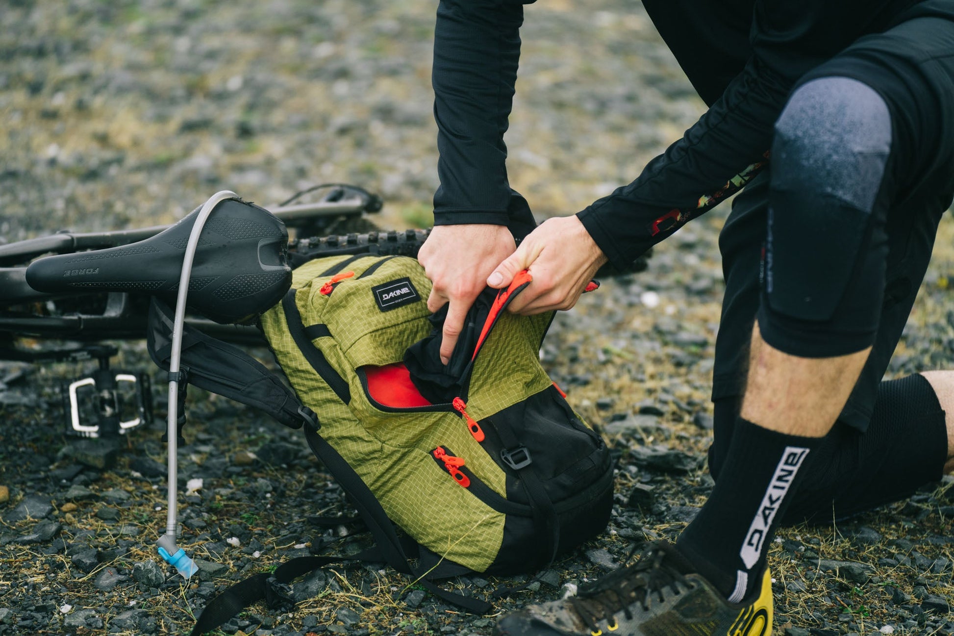Proven 12-liter midspack bike pack with lumbar hydration reservoir.
