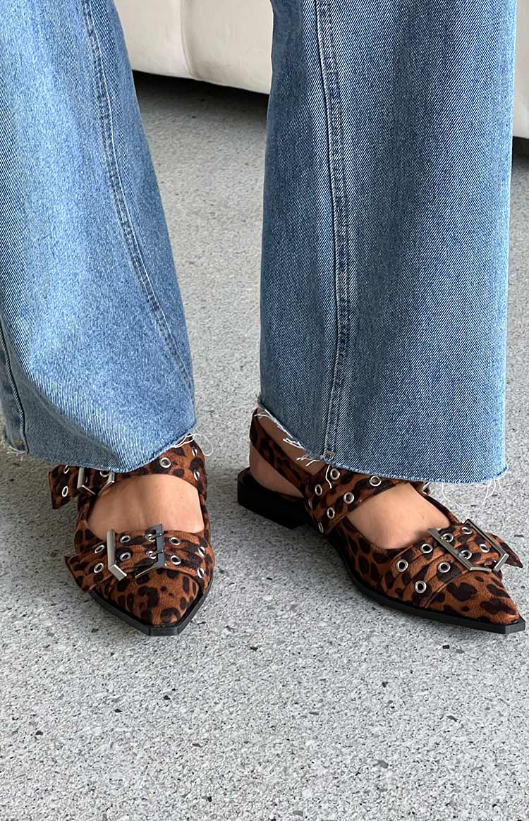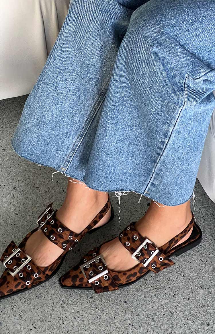 Add a fierce touch to your outfit with our Matilda leopard print pointed flats. Perfect for both casual and dressy occasions, pair them with black pants and a cozy sweater for a chic day look. For an elevated evening ensemble, style them with black dress and a statement red bag.