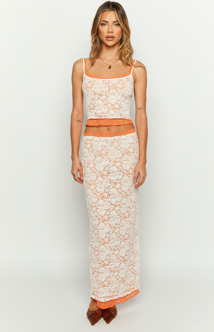 - Orange Lace Tank Top